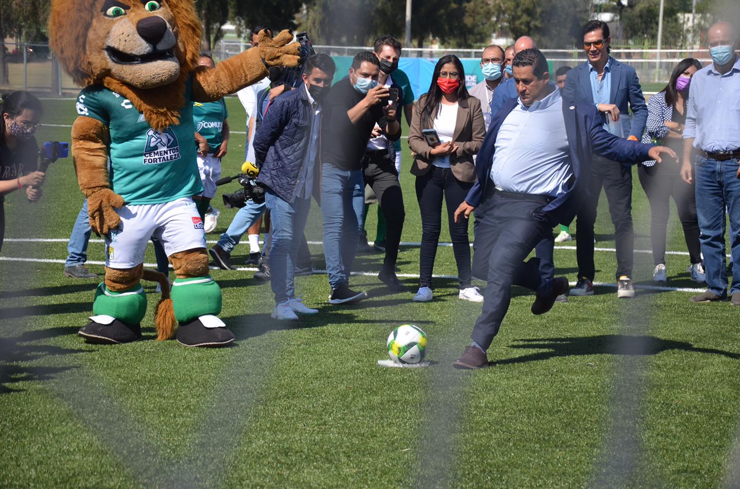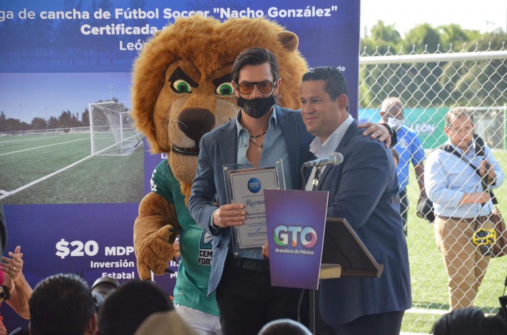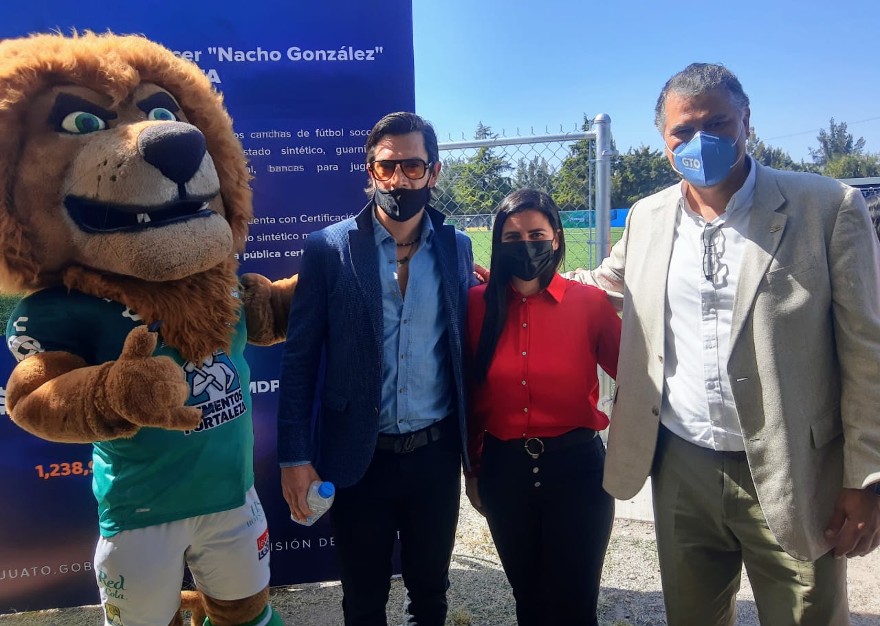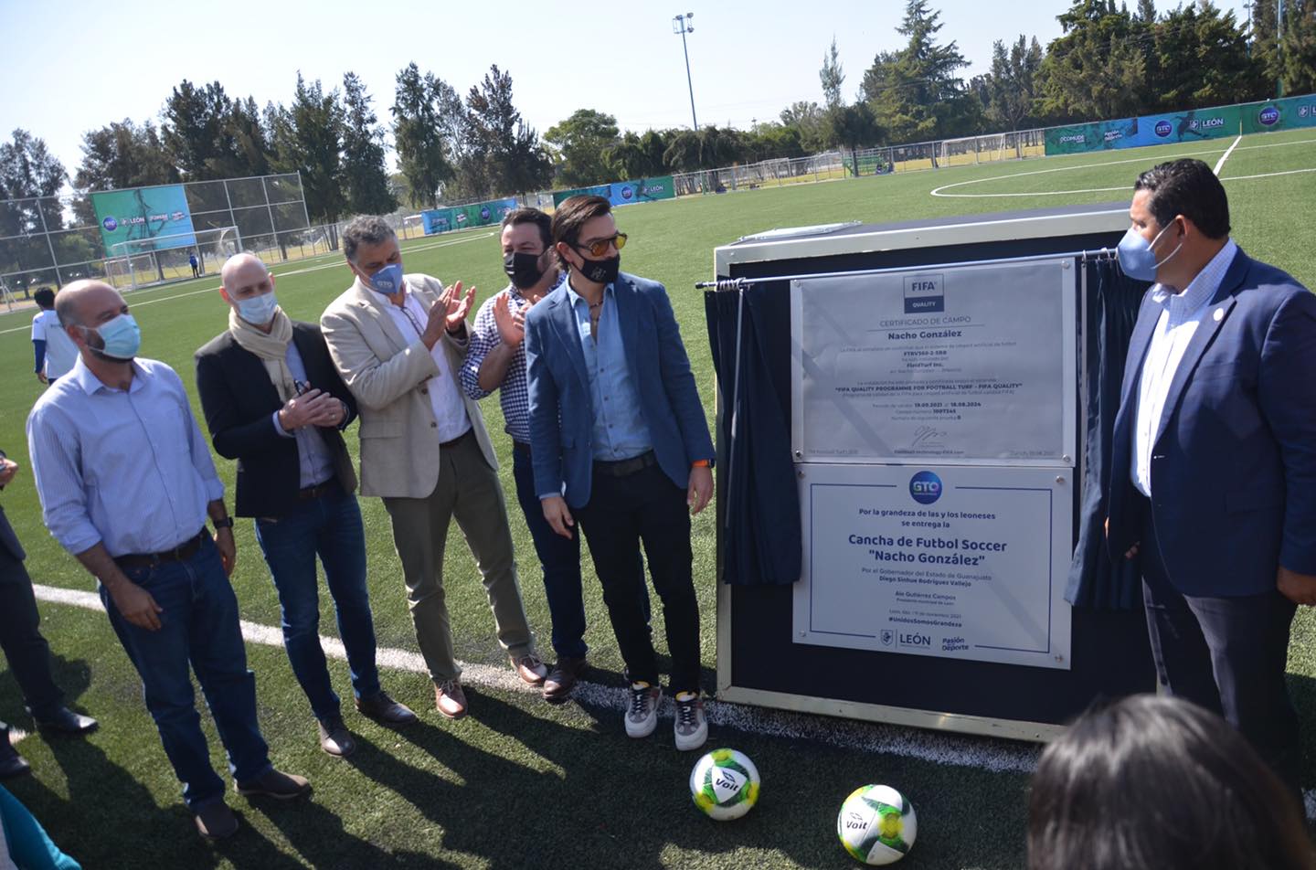 El Gobernador del Estado de Guanajuato, Diego Sinhue Rodríguez, inauguró este jueves la construcción de dos canchas de pasto sintético en la Deportiva Enrique Fernández Martínez. Una de ellas, es la primera con estatus de pública y con la certificación FIFA Quality, la cual llevará el nombre del ex futbolista Nacho González.