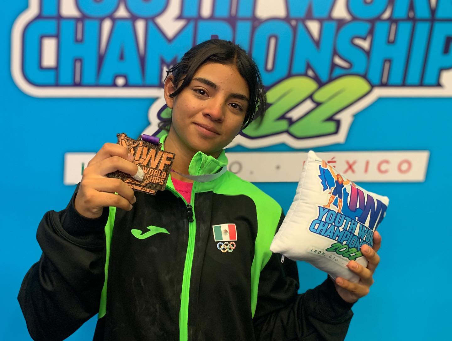 León, Gto: 13 junio del 2022- La halteristas María José Hernández Verdín y Joseline López González, protagonizaron una jornada histórica para la halterofilia de Guanajuato y el país al conquistar una y tres medallas de bronce respectivamente, en el Campeonato Mundial de Halterofilia Sub- 17 IWF, competencia que tendrá como sede el Domo de la Feria de León hasta el próximo 18 de junio.
