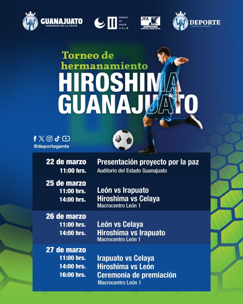 El Torneo de Hermanamiento entre Guanajuato e Hiroshima se llevará a cabo del 25 al 27 de marzo y tendrá como sede las instalaciones del Macrocentro León 1 de CODE.
