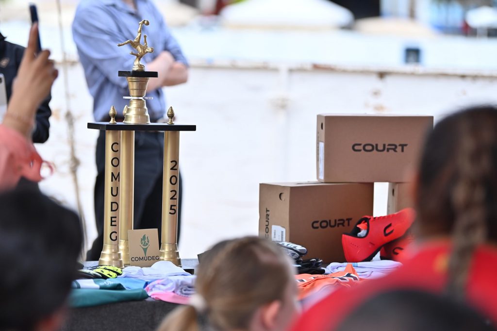 Acompañaron a la Presidenta Municipal, Arq. Samantha Smith, la Directora de la COMUDEG, Mtra. Nayeli Vega, regidor José Carlos Domínguez López Velarde, regidora Fernanda Arellano Caudillo y el Presidente del DIF Municipal, Saul Navarro Smith; los cuales hicieron entrega de información y tenis a los equipos participantes.