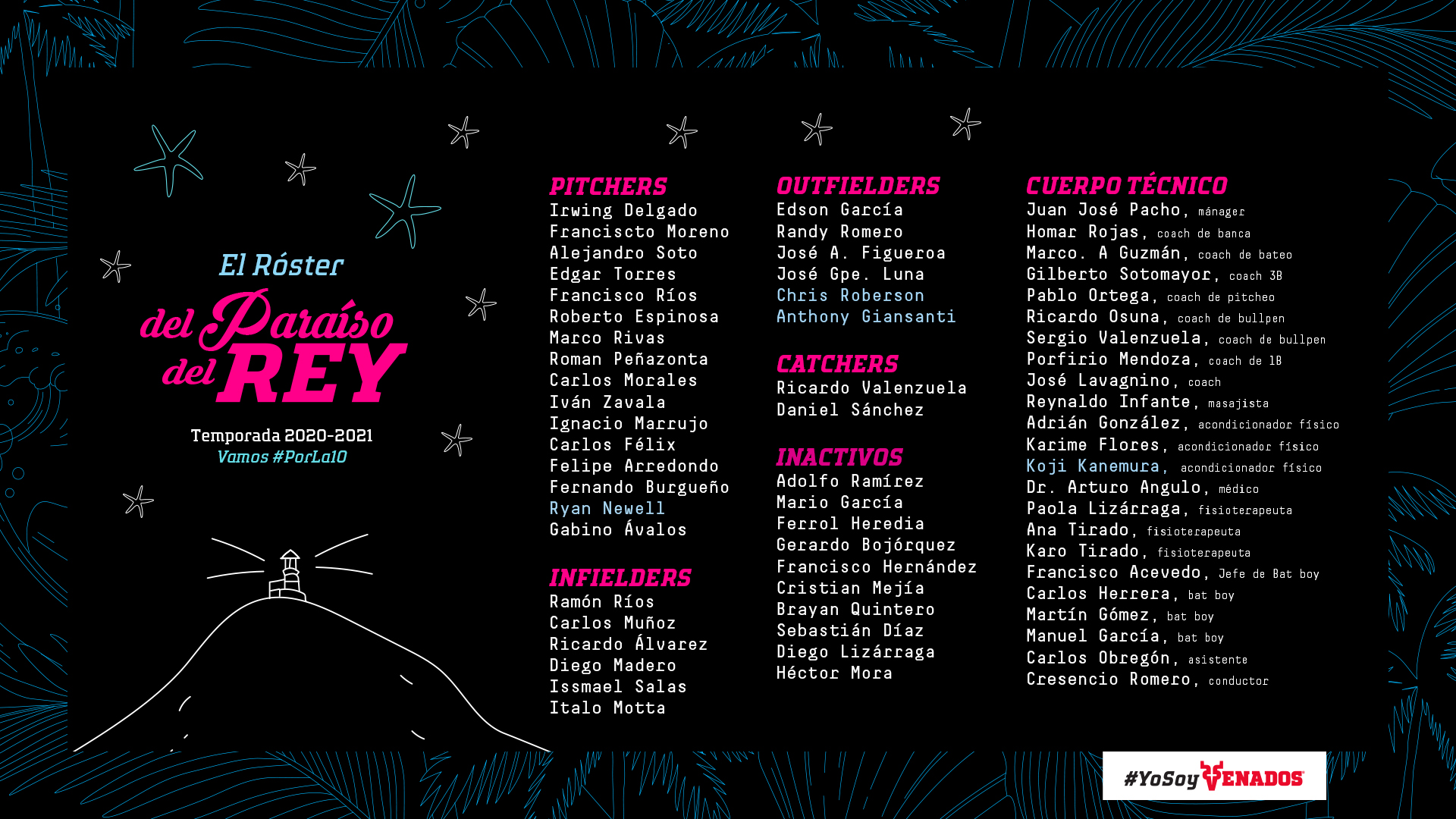 A 2 días del arranque de la temporada 2020-2021 de la Liga Arco Mexicana del Pacífico, Venados de Mazatlán dio a conocer el roster oficial con el cual buscará su décimo título en el circuito invernal.